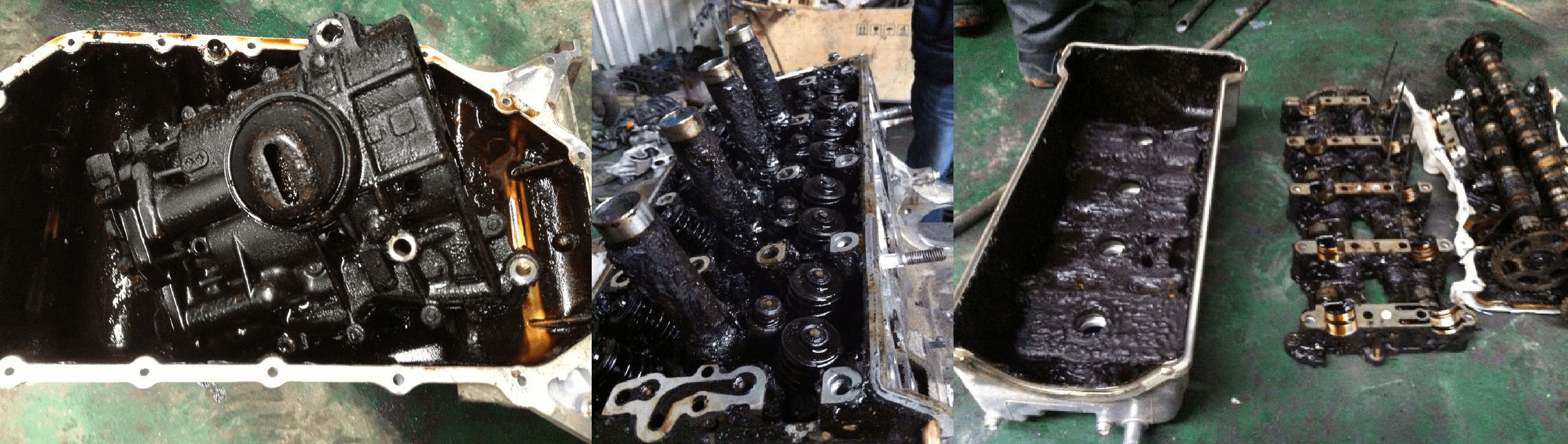 會有油泥,大多是沒定期換機油(4個月/五千公里)或機油不足變質的快(漏油或吃機油),使變質的機油開始產生油泥或油塊,也有可能加到假油或使用機油精,機油量會慢慢減少乾掉,而附著在引擎內部,剛開始機油會變成膏狀或布丁狀,嚴重點會變成塊狀(類似柏油塊),